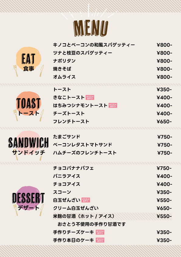 - ランチ再開のお知らせ。ランチ再開のおしらせ。 いつもご利用ありがとうございます。 本日11月21日月曜日より ランチを再開いたします […]